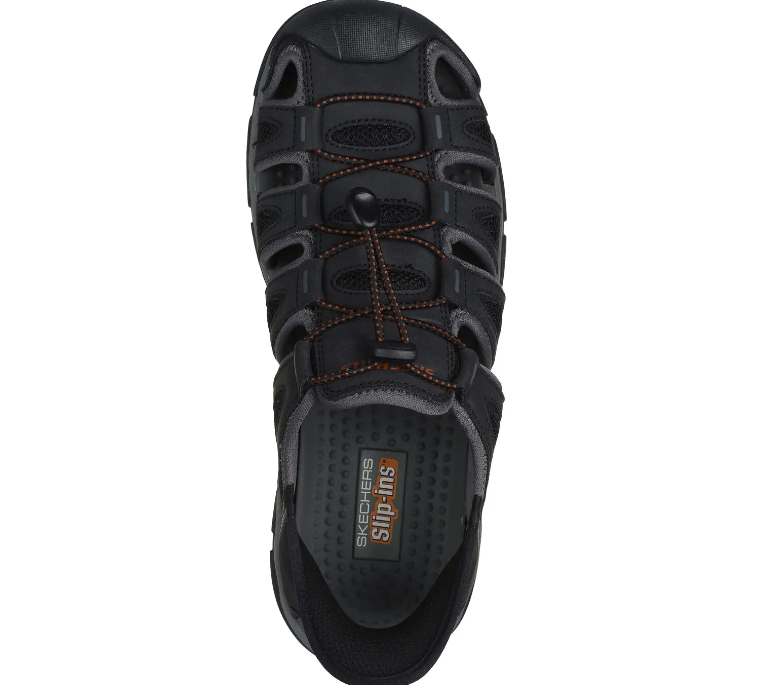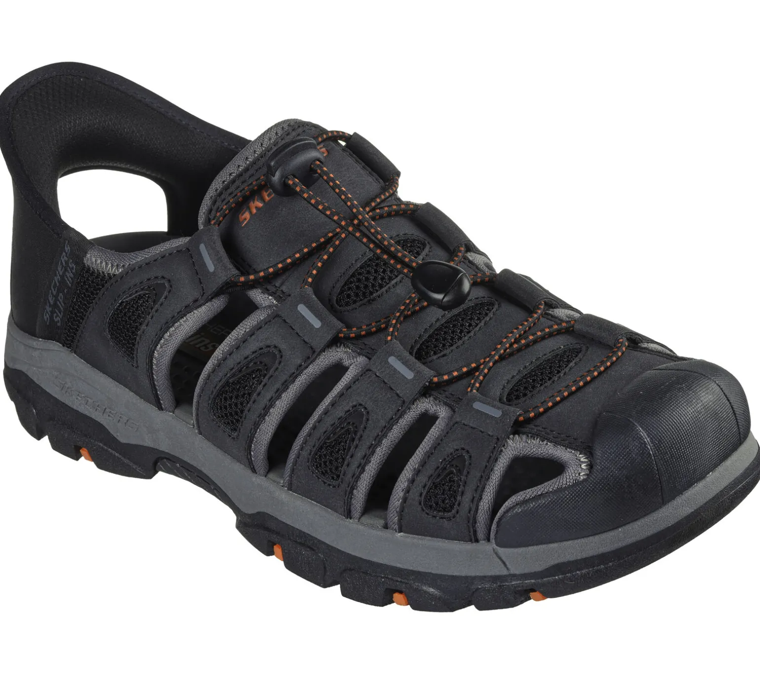 Lässiger Stil und müheloser Komfort vereinen sich in den Skechers Hands Free Slip-Ins® Relaxed Fit: Tresmen – Norvick. Diese Fisherman-Sandale ist mit einem stützenden Fersenkissen (Heel Pillow) ausgestattet und verfügt über ein Obermaterial aus Synthetik mit Knebelverschluss vorn, Stützung im Fersenbereich und gepolstertem Komfort-Fußbett.