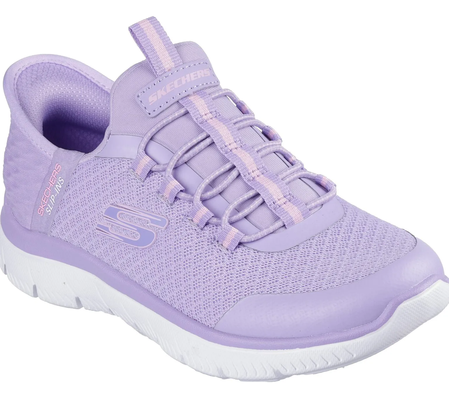 Verwöhne deine Kids mit dem hohen Tragekomforts eines Skechers-Favoriten – dem Skechers Slip-Ins®: Summits. Dieser beliebte Slip-On ist mit dem exklusiven Skechers Fersenkissen (Heel Pillow) ausgestattet und verfügt über ein Obermaterial aus Mesh mit Hotmelt-Overlay und fester Stretch-Schnürung sowie eine gepolsterte Skechers Air-Cooled Memory Foam Komfort-Innensohle.