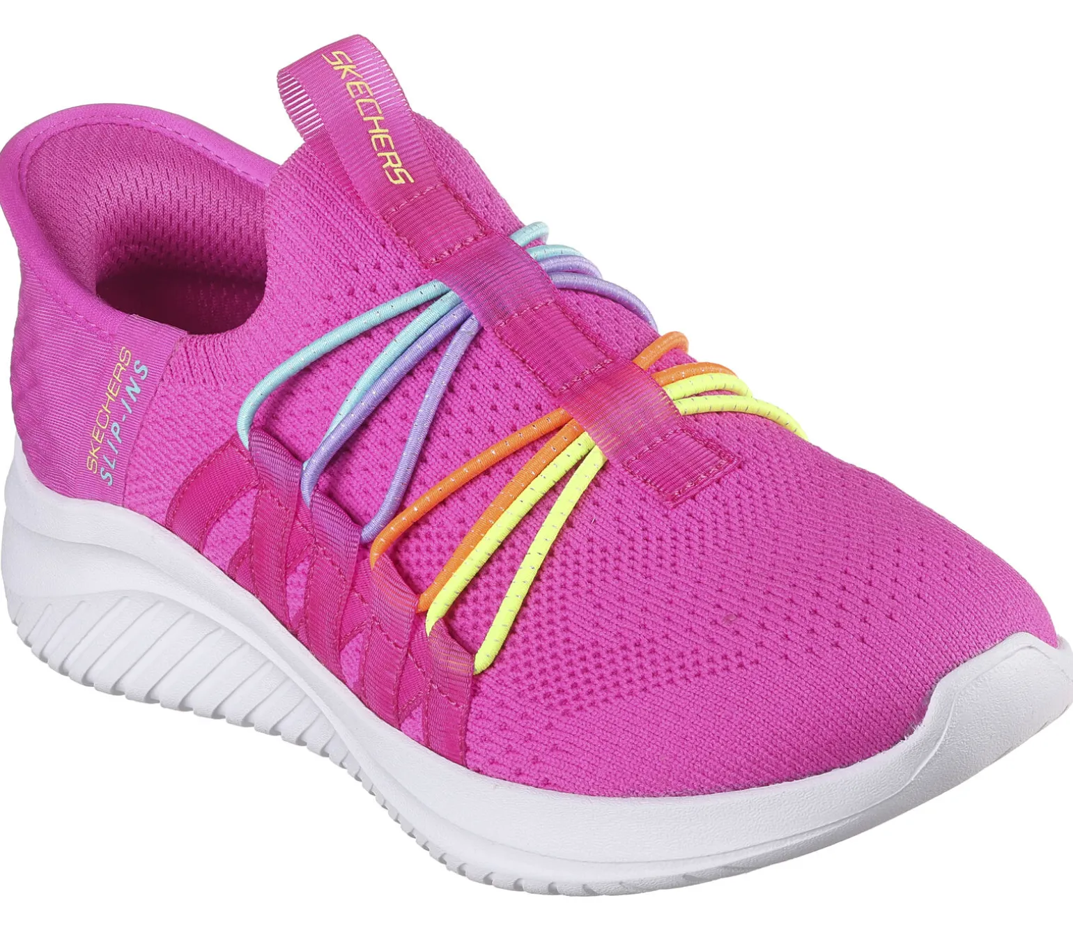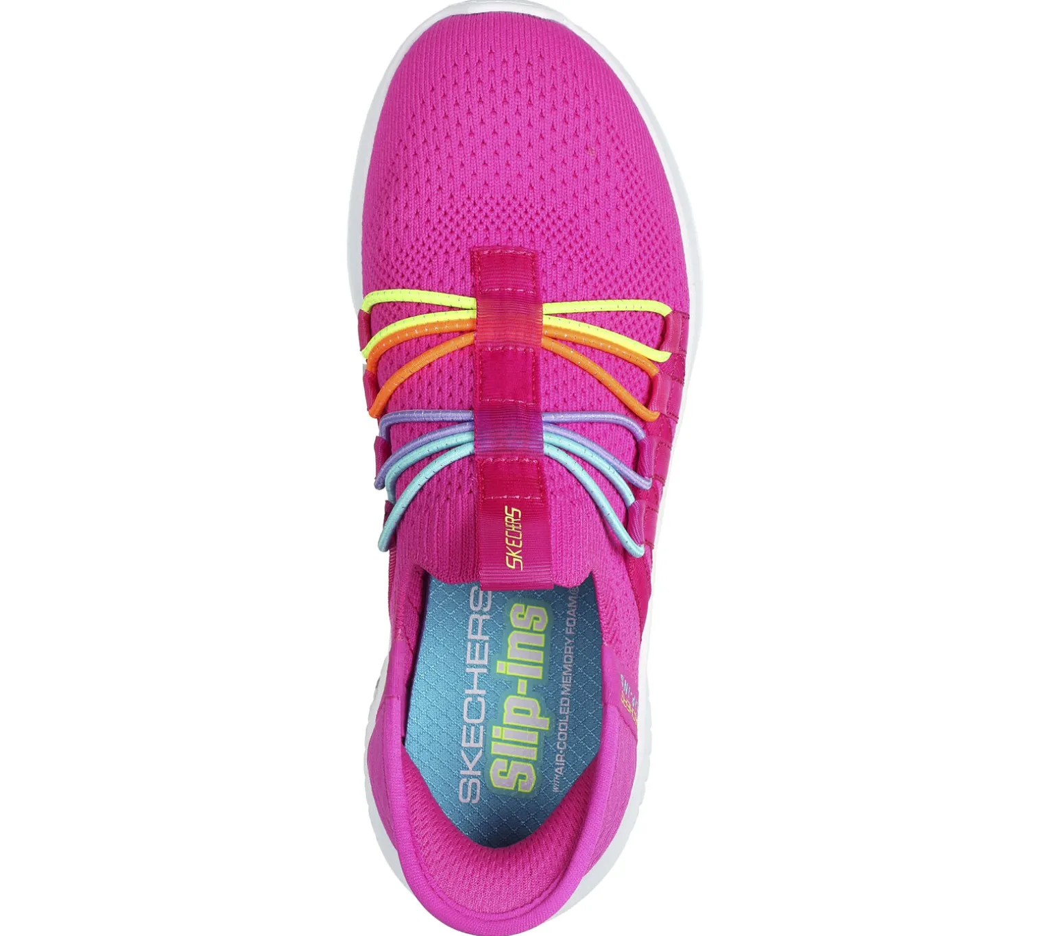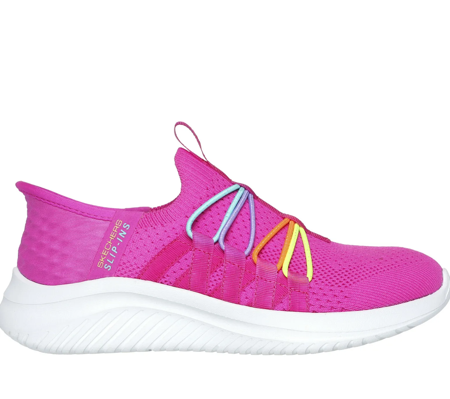 Einfach und bequem losziehen und Stil bewahren – mit Skechers Hands Free Slip-Ins® Ultra Flex 3.0 – Bungee Fun. Dieses farbenfrohe Comfort®-Modell verfügt über ein Stretch Fit Funktions-Obermaterial mit dem einzigartigen Skechers Heel Pillow in der Ferse und eine gepolsterte Skechers Air-Cooled Memory Foam-Innensohle.