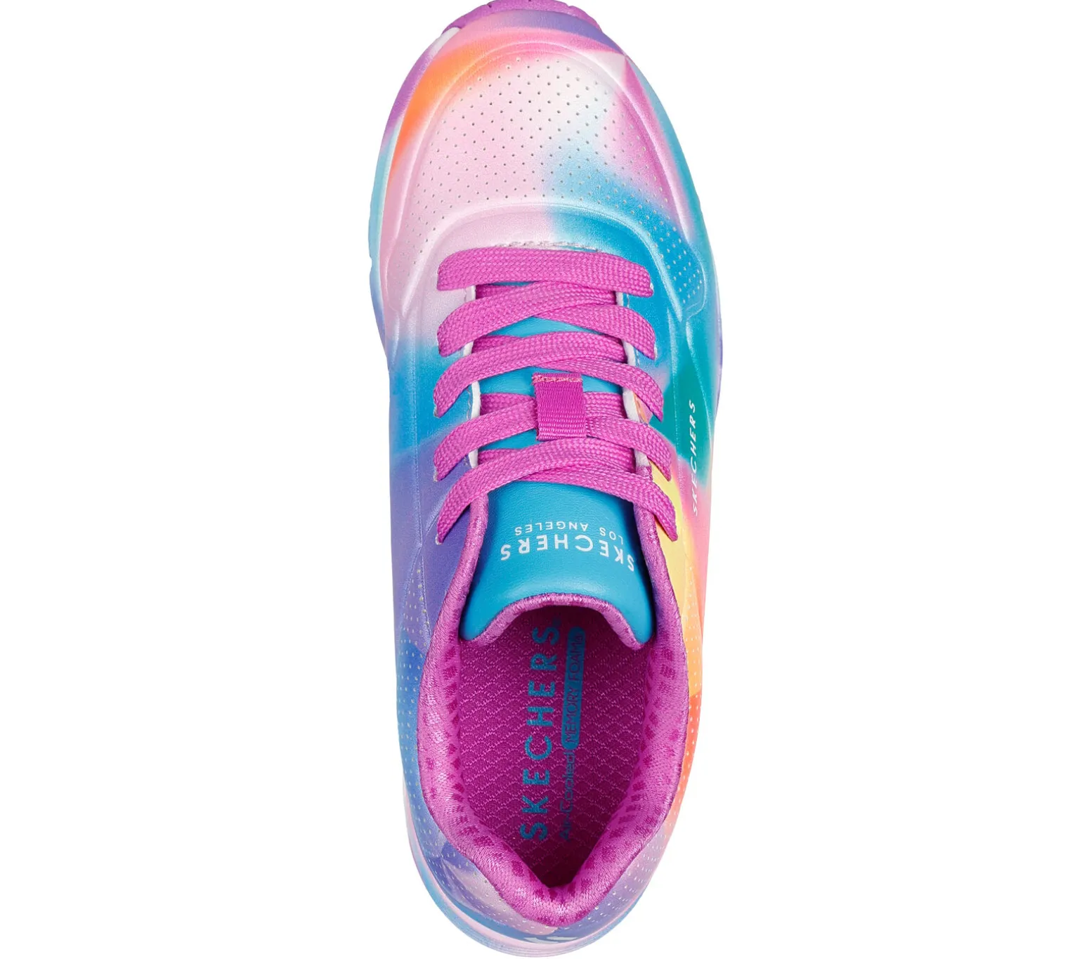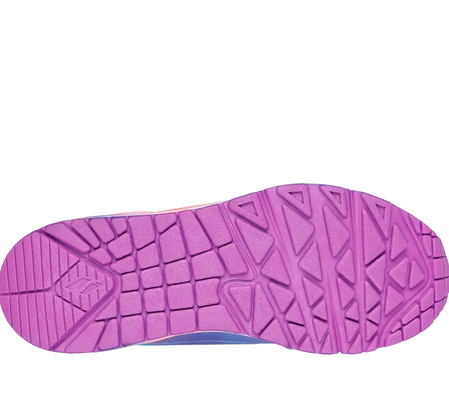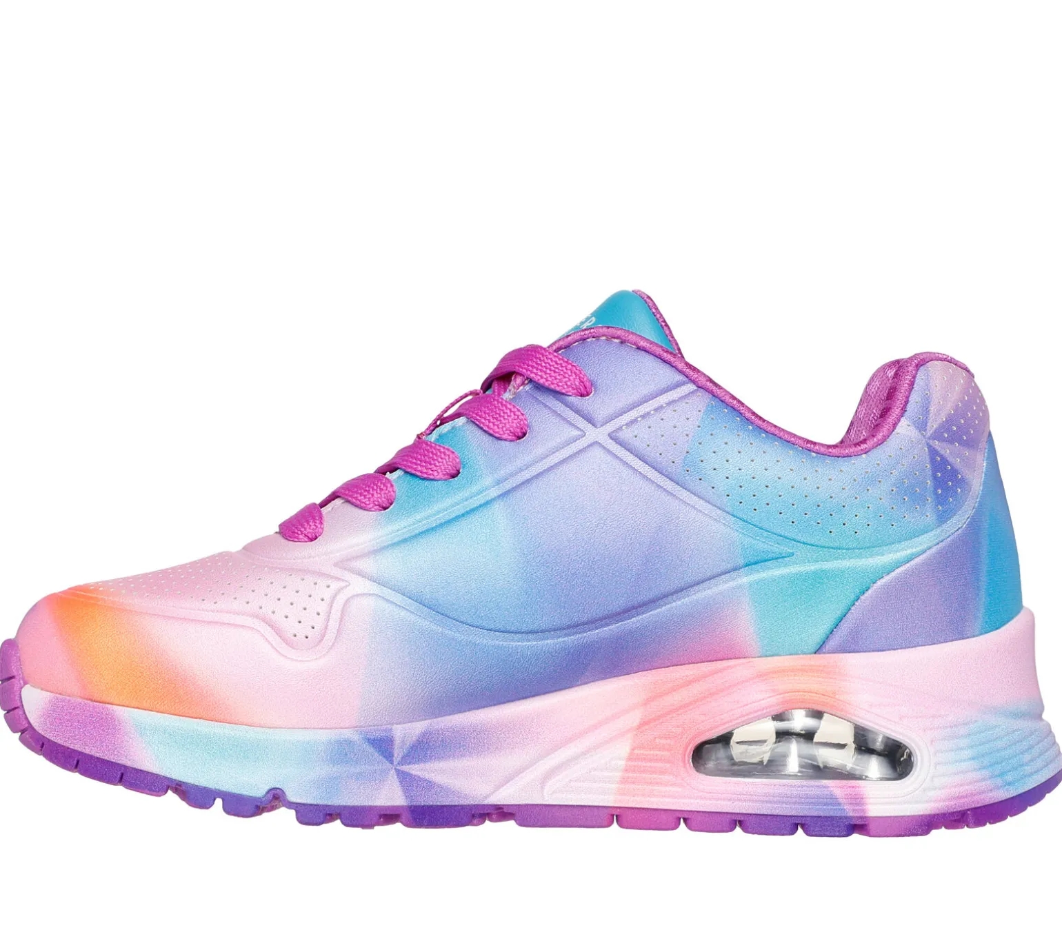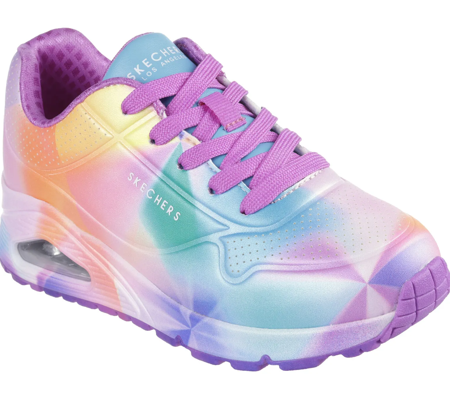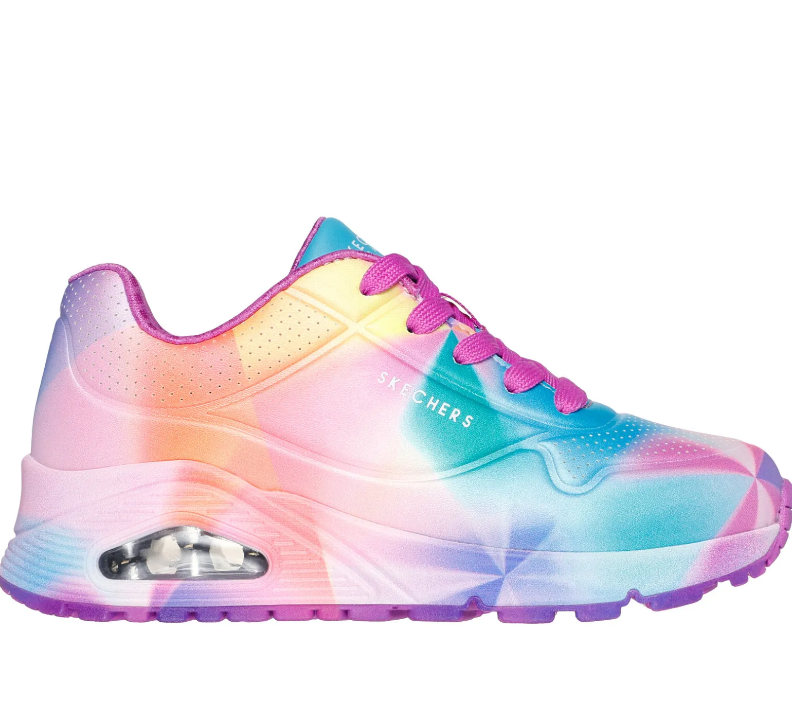 Erobere den Spielplatz in den Skechers Street Uno Gen1 – Prism Burst. Dieser modische Sneaker mit Schnürung verfügt über ein Obermaterial aus synthetischem Durabuck mit durchgängigem Kaleidoskop-Druck, eine Skechers Air-Cooled Memory Foam Komfort-Innensohle und eine Skech-Air-Zwischensohle mit sichtbarer Luftkissendämpfung.