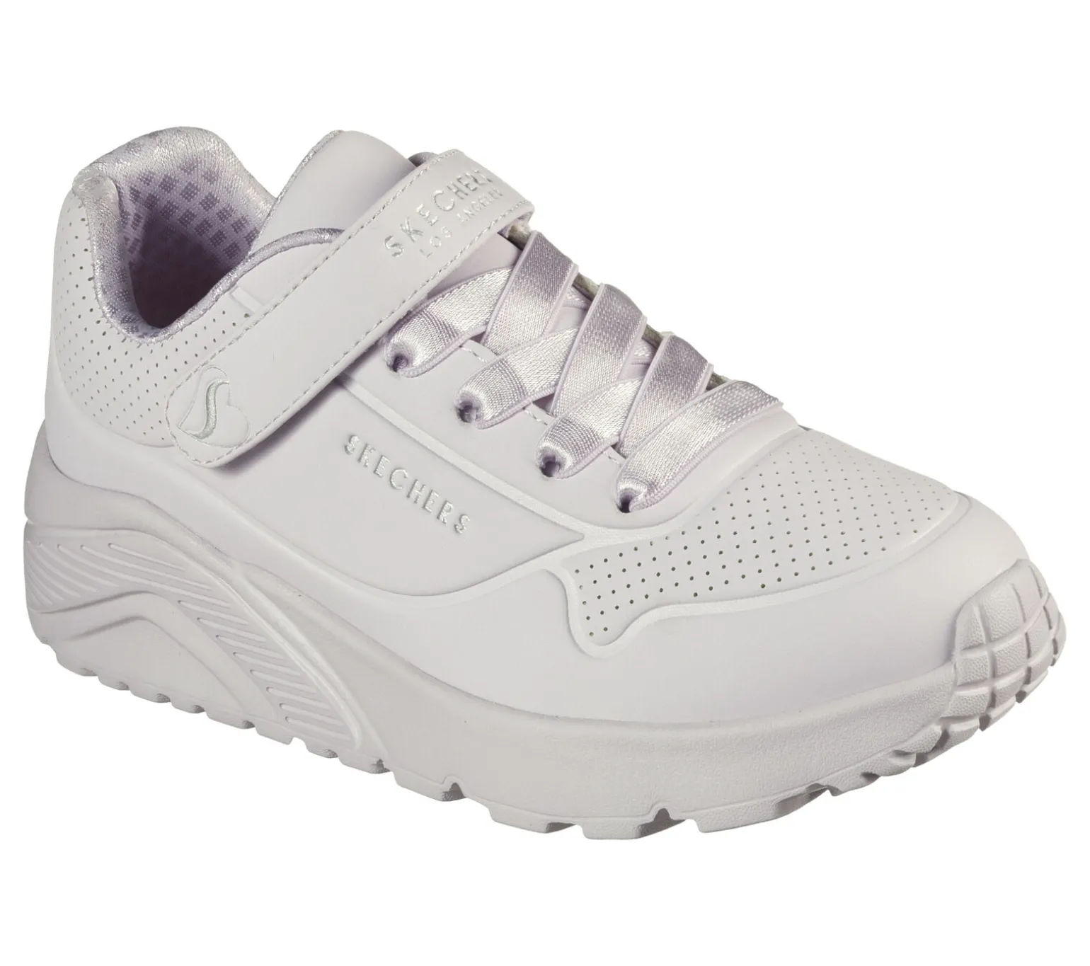 Frische deinen Look mit dem einzigartigen Farbton der Skechers Street Uno Lite – Frosty Vibe auf. Dieser modische Slip-On verfügt über ein Obermaterial aus synthetischem Durabuck mit Stretch-Schnürsenkeln, eine Skechers Air-Cooled Memory Foam®-Innensohle und eine gepolsterte Plateau-Zwischensohle.