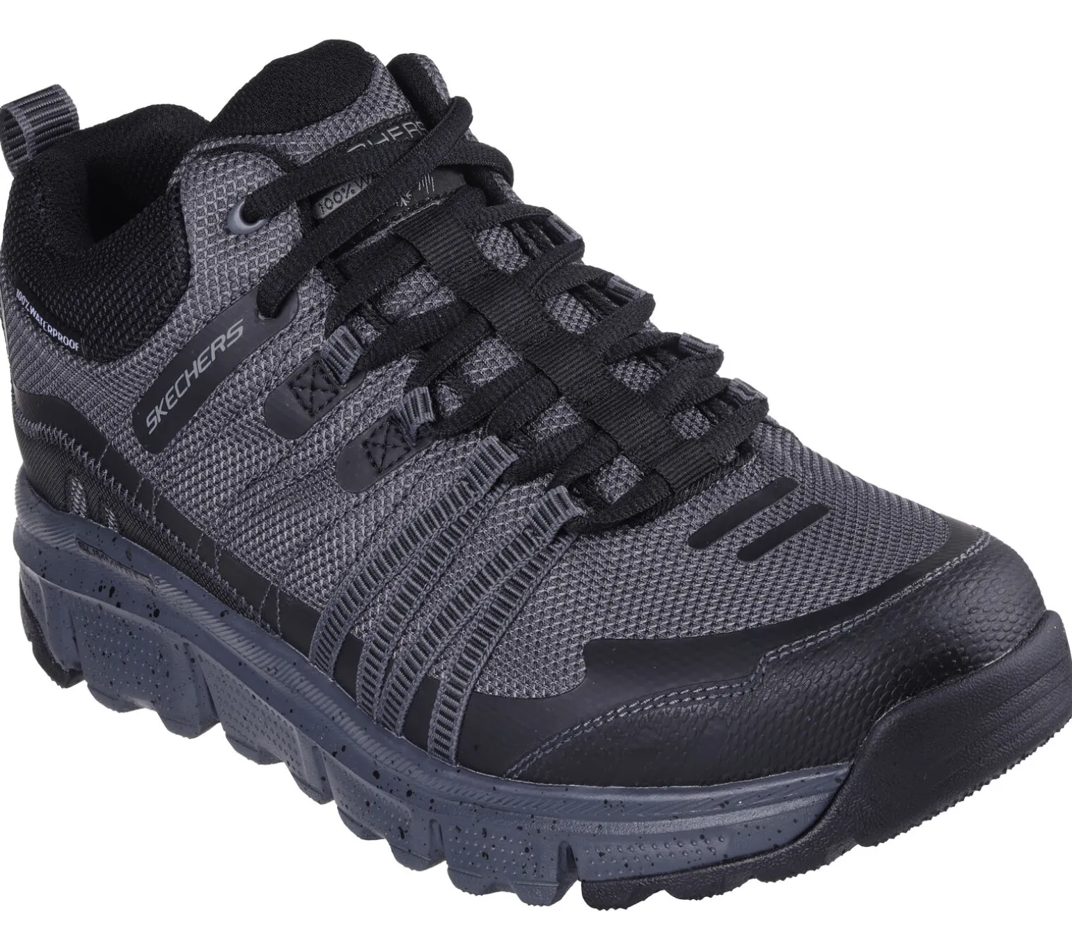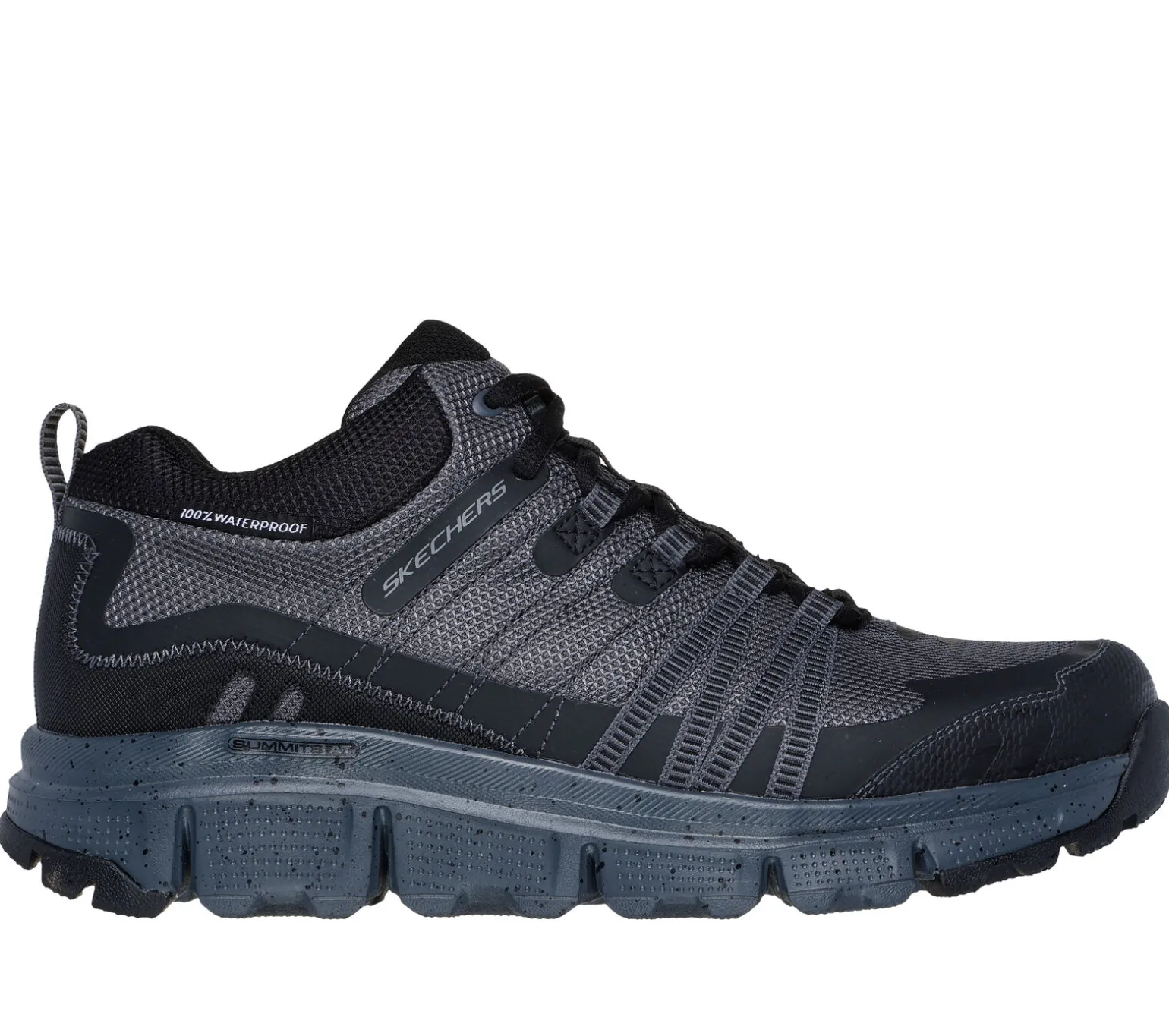 Meistere selbst schwierigste Trails und trotze den Elementen im Skechers Summits AT – Canobie. Dieser Outdoor-Trailschuh zum Schnüren verfügt über ein Obermaterial aus Mesh, die wasserabweisende Skechers Breathe Easy Technology und eine gepolsterte Skechers Air-Cooled Memory Foam Komfort-Innensohle.