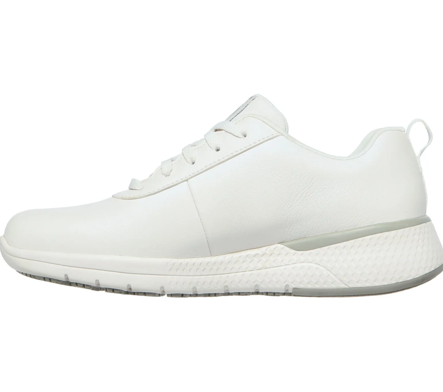 Support, Komfort und Sicherheit für das ganztägige Tragen bietet der Skechers Work Relaxed Fit: Marsing – Gmina SR. Dieses rutschhemmende Modell verfügt über ein Obermaterial aus Leder und Synthetik, eine Schnürung und eine gepolsterte Skechers Memory Foam-Einlegesohle.