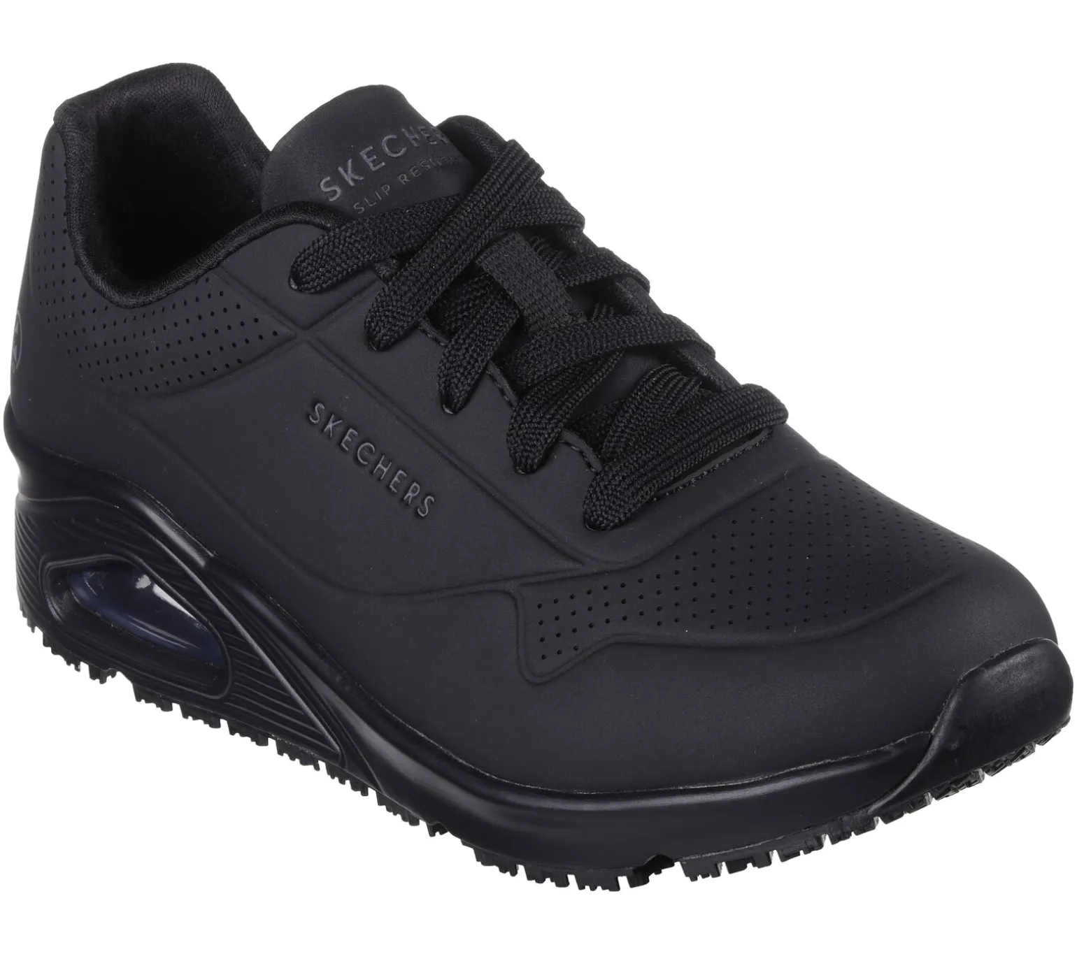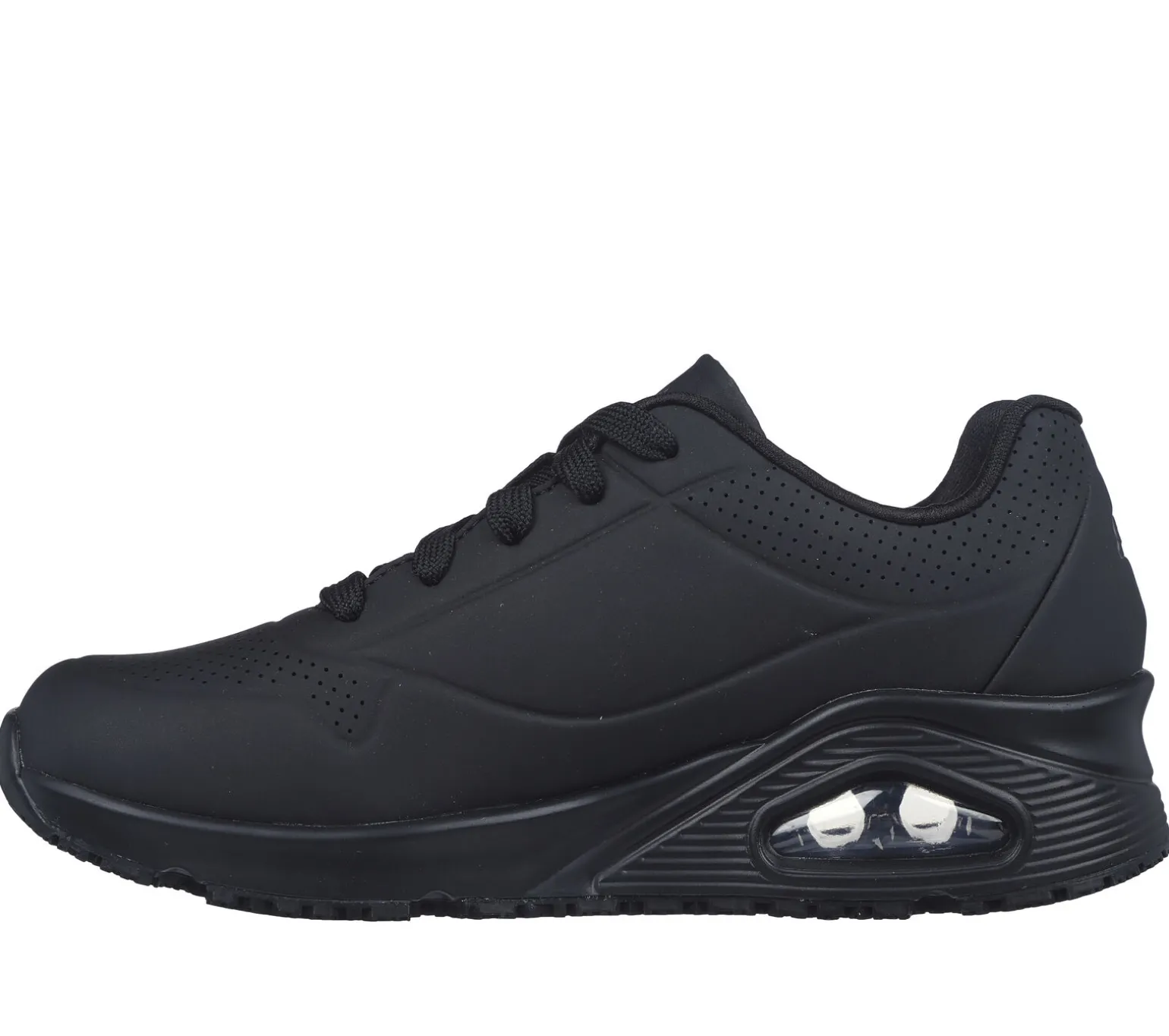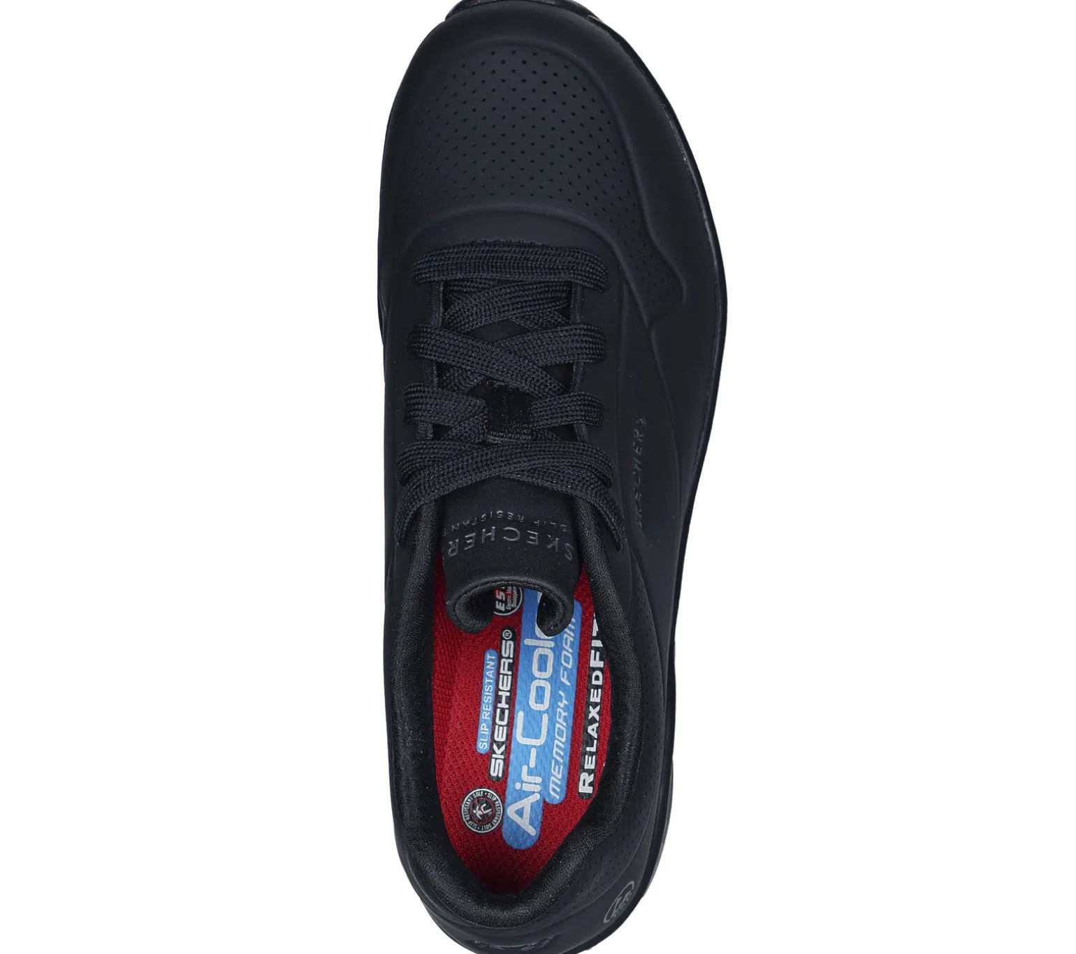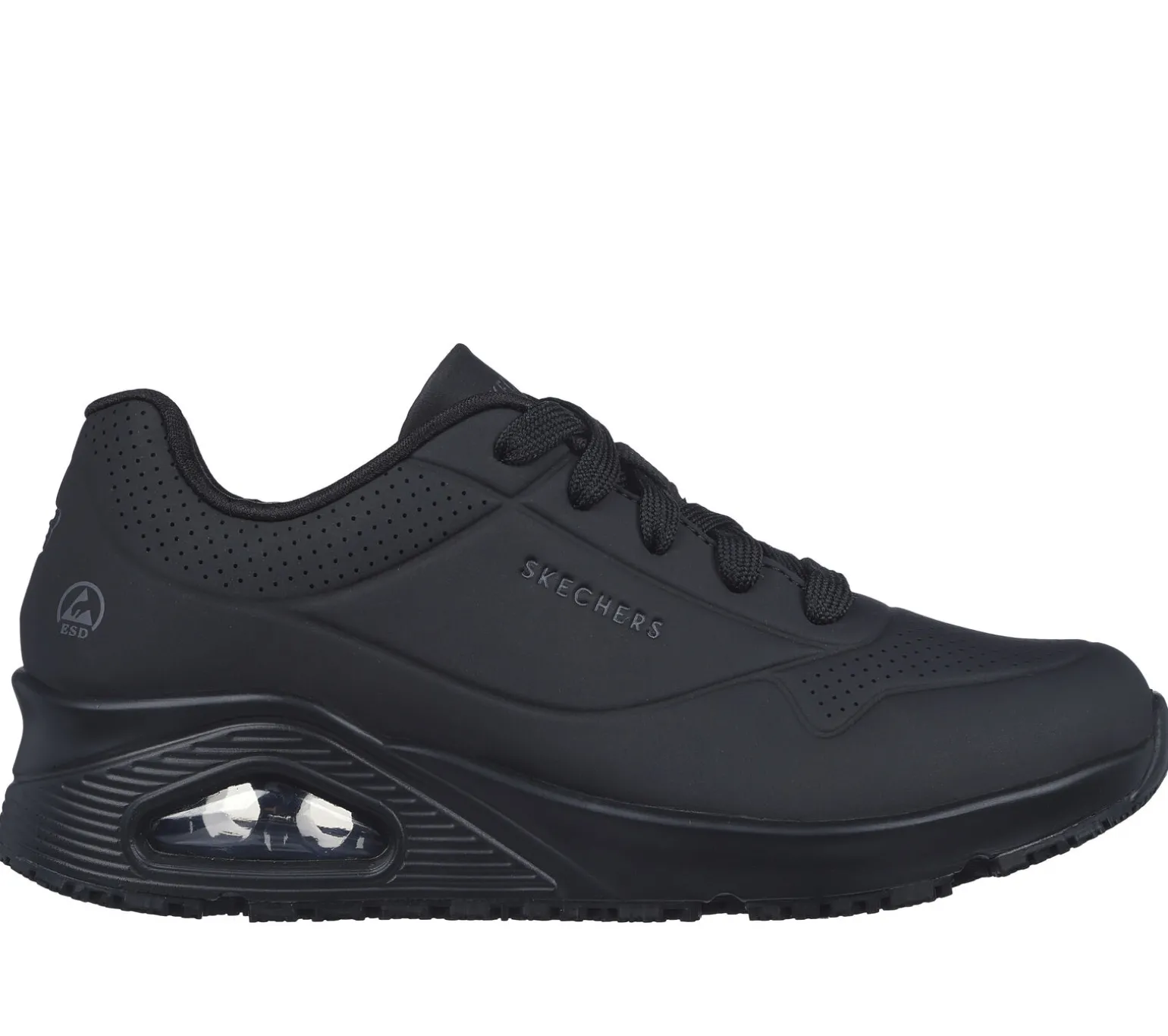Sei auf der sicheren Seite mit dem sportlichen und bequemen Skechers Work Relaxed Fit®: Uno SR. Dieser rutschhemmende Arbeitsschuh verfügt über ein strapazierfähiges, perforiertes Obermaterial aus synthetischem Durabuck, eine Skechers Air-Cooled Memory Foam-Einlegesohle und eine sichtbare Skech-Air® Airbag-Zwischensohle.